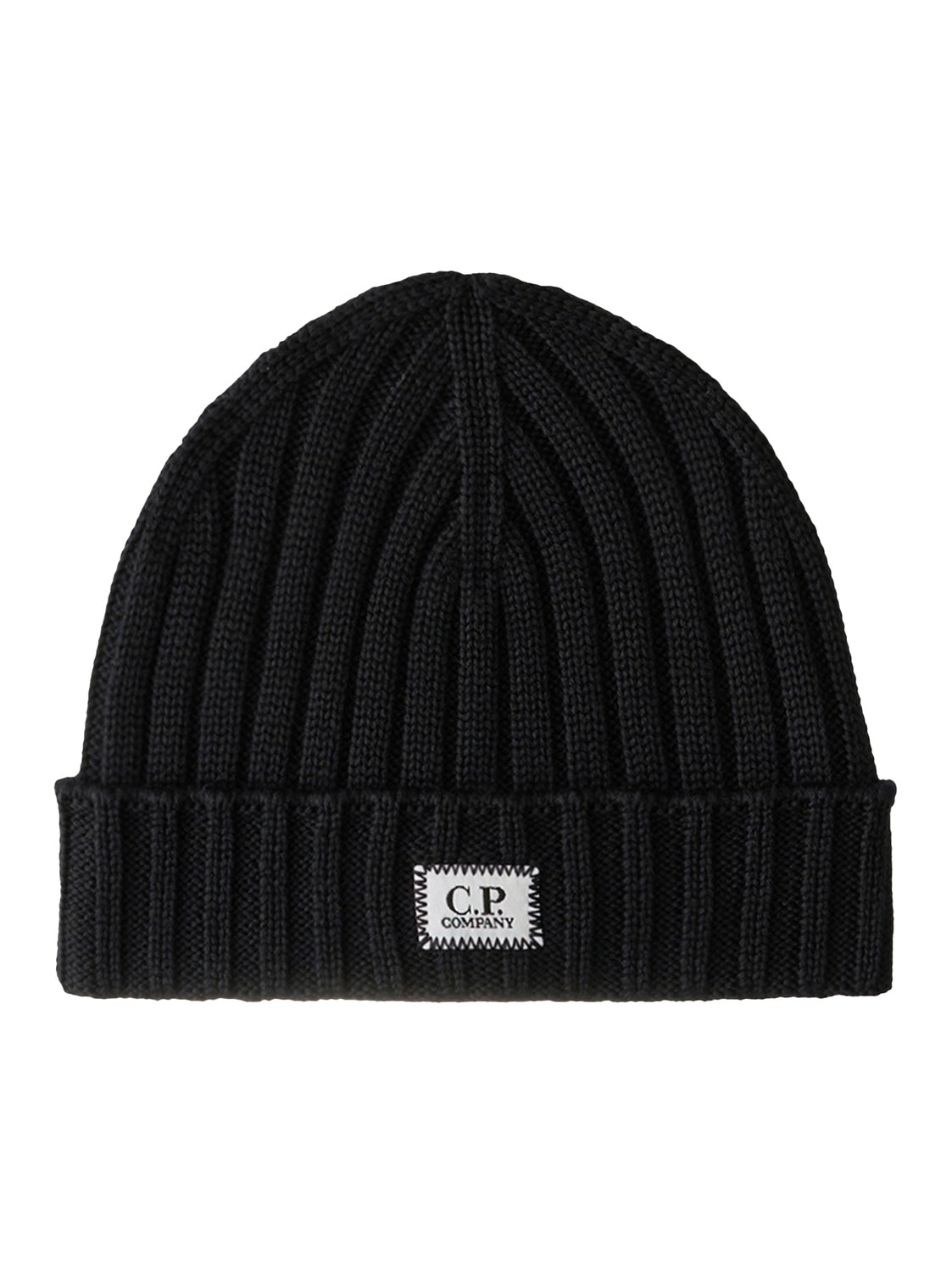 C.P. Company Merino Wol Logo Beanie – Blauw