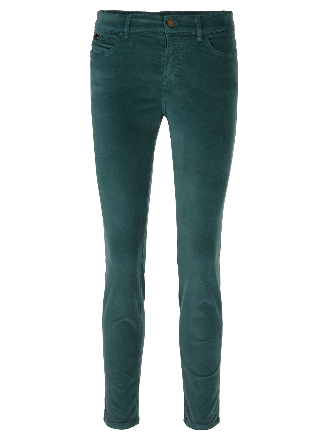 De SILVI-broek met fluweelzacht materiaal is een relaxte broek voor elke dag. De broek heeft een slanke pasvorm en korte pijpen. De lage tailleband benadrukt de casual stijl. De minivergrendeling op de rechterzak is een decoratief element.