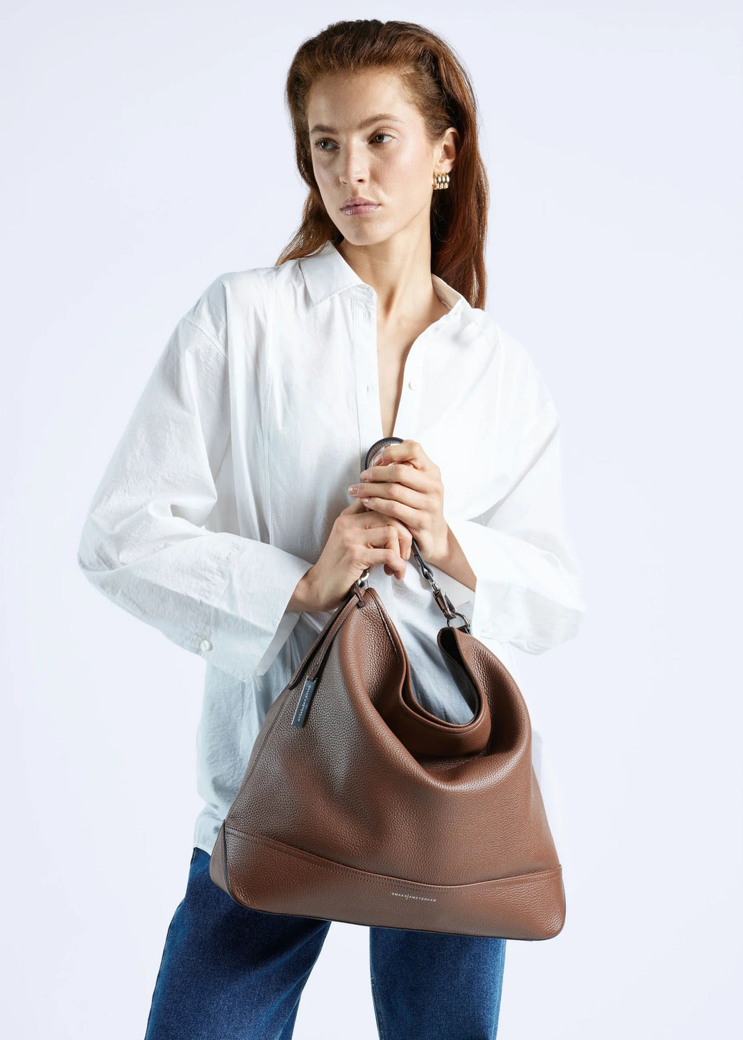 De Tuur‑hobo van Smaak Amsterdam combineert moeiteloos relaxed design en praktische functionaliteit. Gemaakt van hoogwaardig, lichtkorrelig leer in een warme camel‑bruine kleur. De tas heeft een slanke hobo‑passant met ritssluiting aan de bovenzijde, subtiele metalen accenten en het discrete goudkleurige Smaak Amsterdam‑merklogo aan de voorzijde. Dankzij de ruime hoofdcompartiment ligt hij comfortabel onder de arm, terwijl een afneembare brede shoulder‑strap extra draagvariatie biedt. Binnenin is een ritsvak aanwezig om uw essentials georganiseerd te houden.