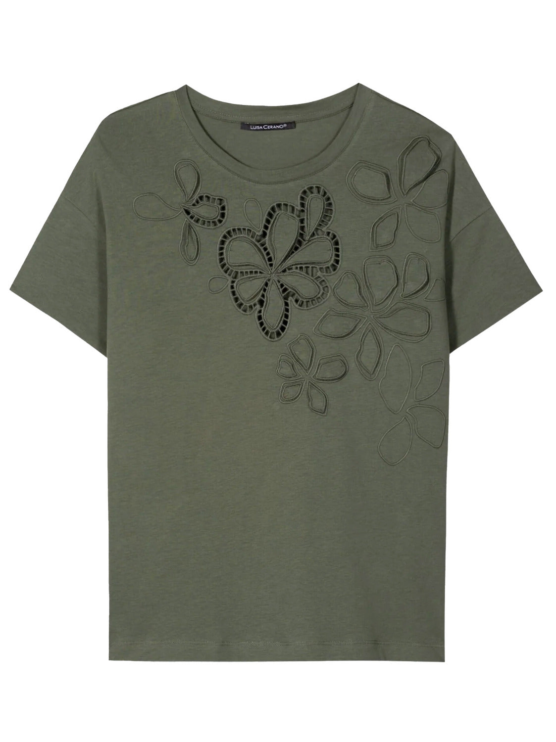 Luisa Cerano T-shirt met bloemen – Groen-100% katoen-DAMES TOPS & BLOUSES-Groen