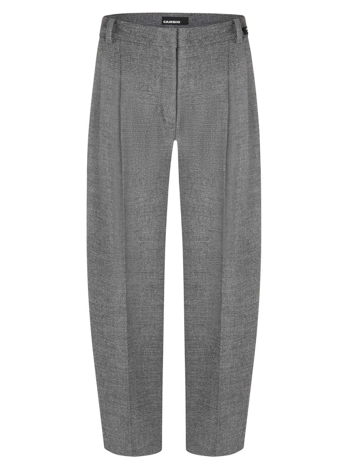 Met een verfijnde salt & pepper structuur en moderne tapered fit is deze pantalon een stijlvolle keuze voor zakelijke én casual settings. De soepele stof en neutrale grijstint zorgen voor een elegante, tijdloze uitstraling. De hoge taille en vouwnaad accentueren een flatterend silhouet. Ontdek Cambio Emilie Pantalon – Grijs nu bij Hoogenboom.