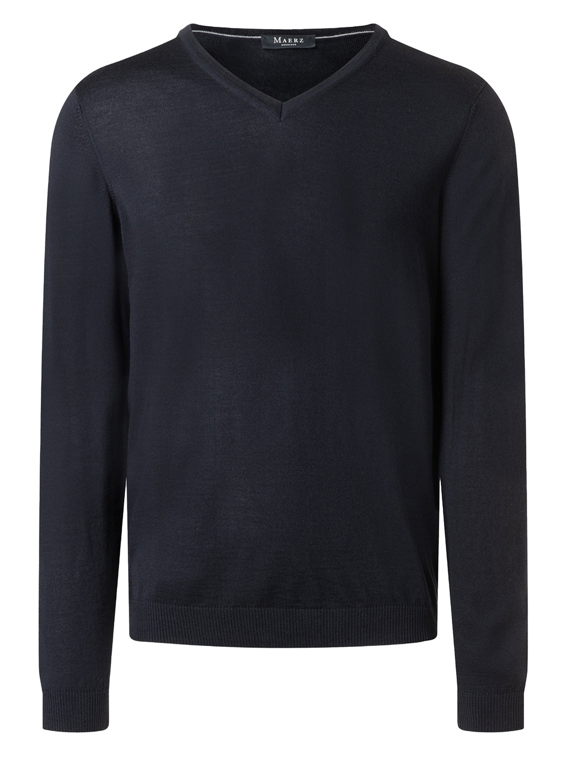 Maerz Merino V‑Hals Trui – Blauw-100% merino wol-HEREN TRUIEN & VESTEN-Blauw