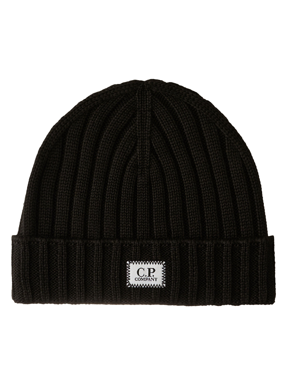 C.P. Company Merino Wol Logo Beanie – Zwart