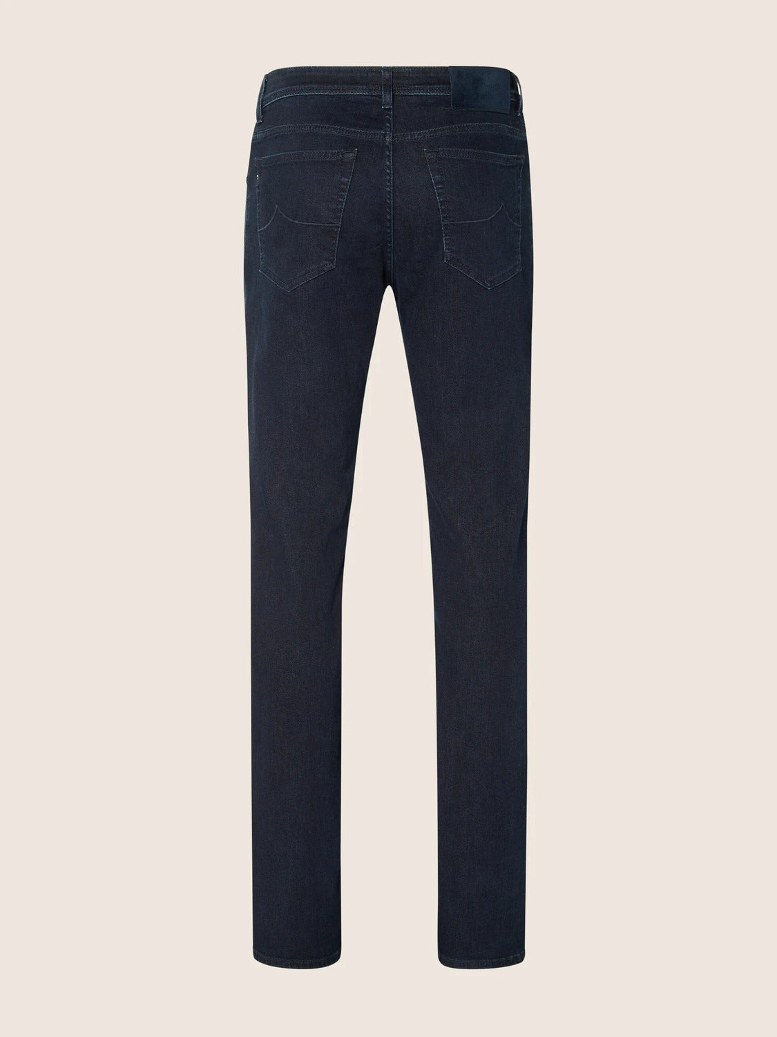 Deze Nick Slim 5‑Pocket Pants van Jacob Cohën is een moderne klassieker in blauwtint. Gemaakt van een comfortabele stretch denimmix, biedt hij een slanke pasvorm met regular‑slim fit en mid-rise taille. De broek combineert functionaliteit met verfijnde details: denk aan ton-sur-ton biker‑en‑piping afwerking, luxe binnenramingsnaden, een leren logo–patch en een discreet bandana-detail in de achterkant. Ideaal voor mannen die stijl en comfort even belangrijk vinden — een onmisbaar statement-piece voor zowel zakelijke als casual looks.