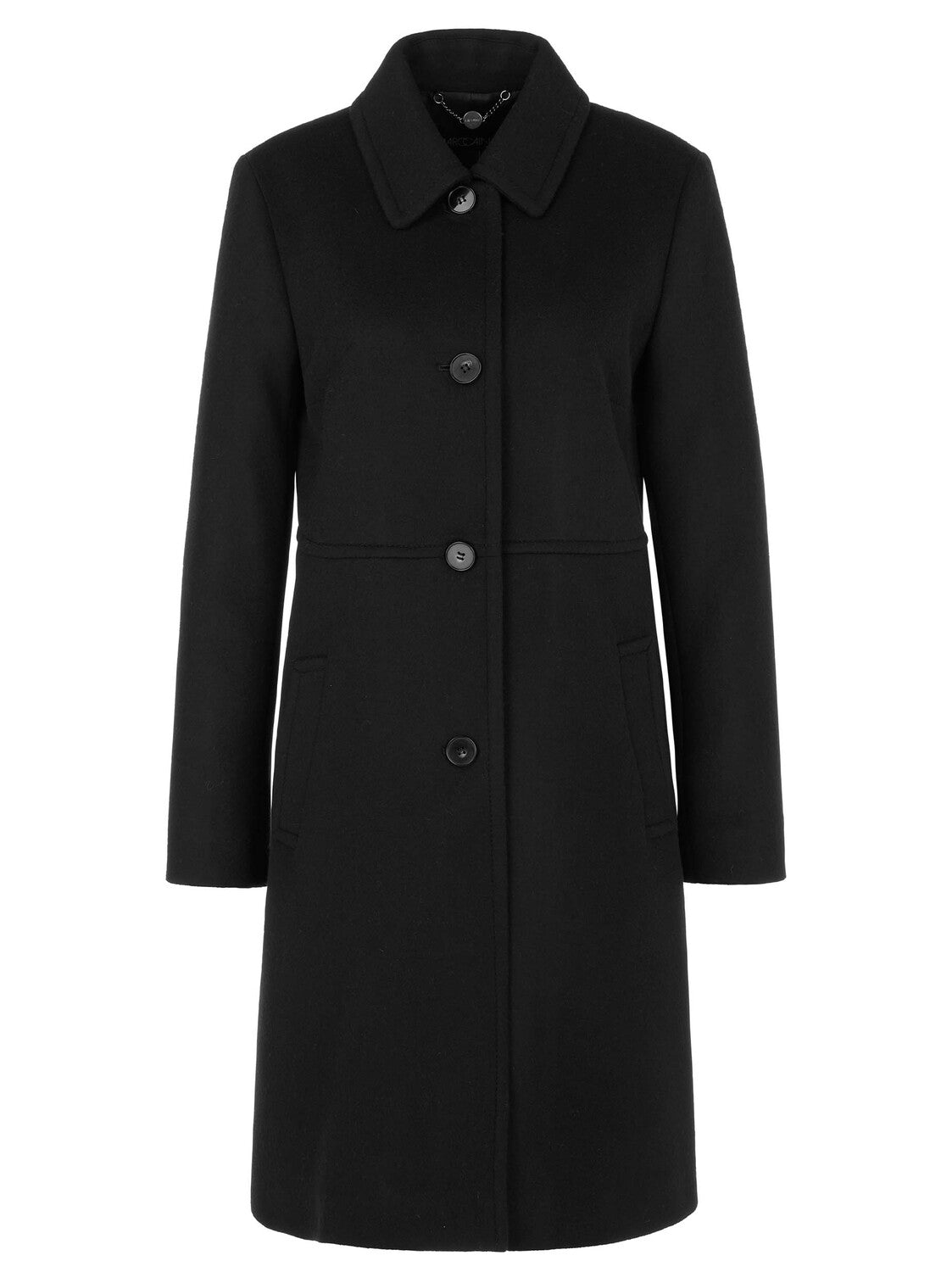 Een perfecte aanvulling op vrouwelijke outfits - jas in prinsessenstijl. De stof is gemaakt van een fijne vezelmix met scheerwol en kasjmier. Karakteristieke details: de Kent-kraag, de taillenaad en de licht uitlopende rok. Het model is gevoerd.