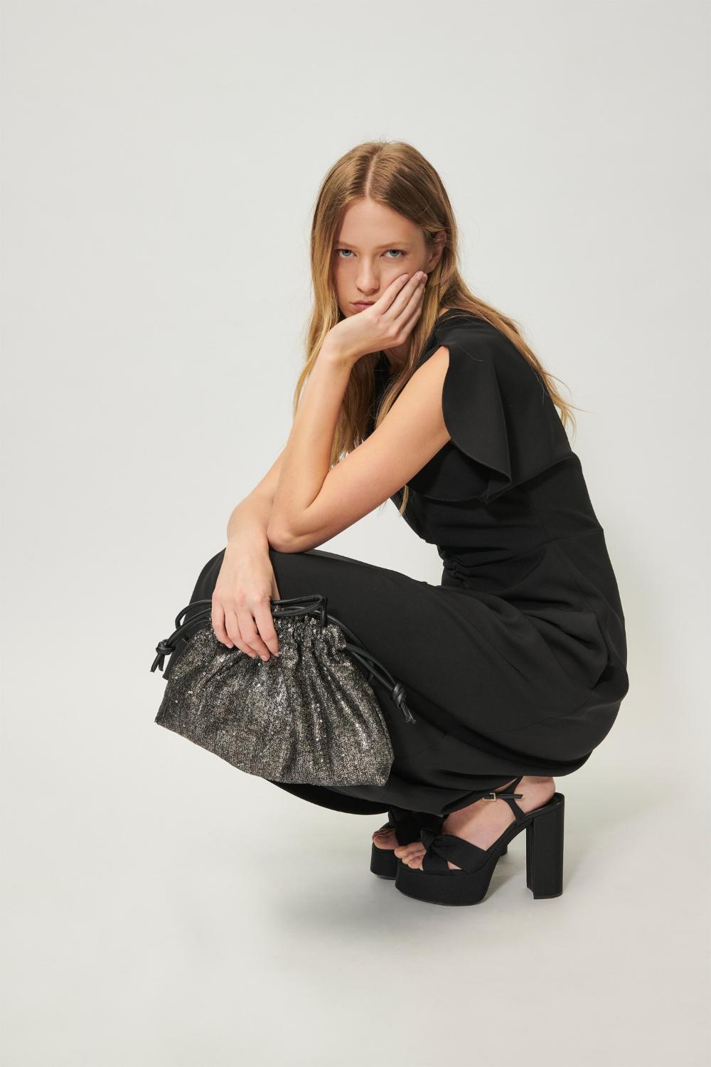 Luisa Cerano crepe jurk zwart-94% polyester, 6% elastaan-DAMES JURKEN-Zwart