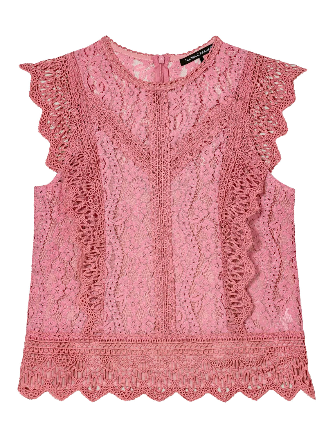 Luisa Cerano Kanten Blouse met Borduursels-35% katoen, 35% polyamide, 30% viskose-DAMES TOPS & BLOUSES-Roze