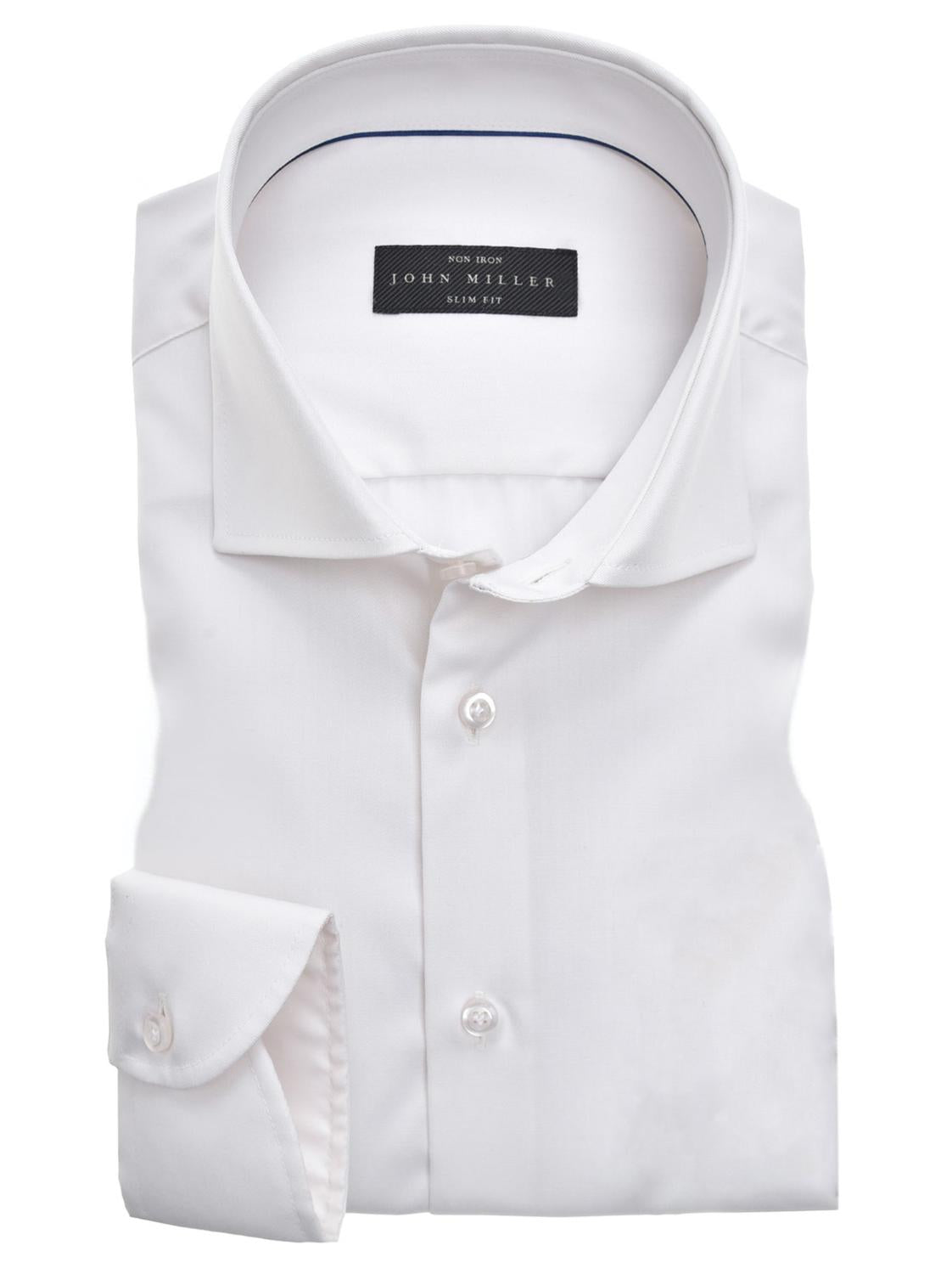 Dit witte overhemd heeft een tailored fit. De minimalistische ton sur ton uitwerking van het doek creëert in combinatie met de moderne cutaway boord een jonge, stijlvolle look. Uitgevoerd in een bijzonder mooi en comfortabele hyperstretch kwaliteit