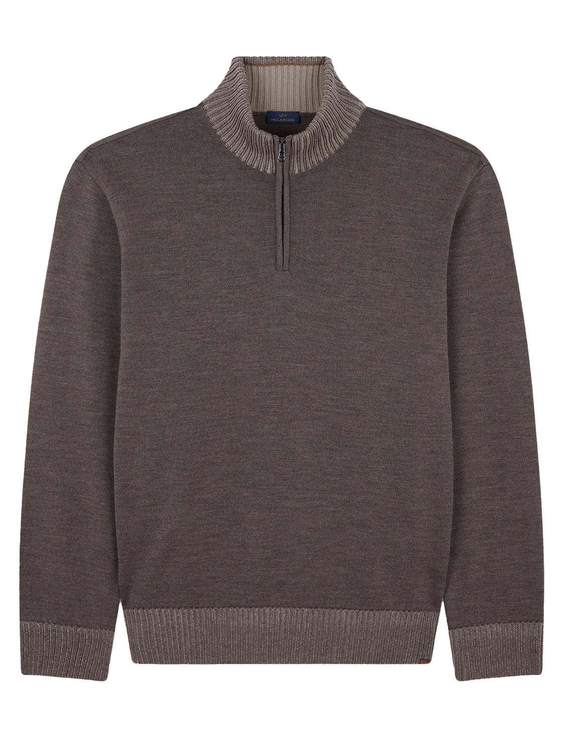 Paul & Shark Soft Cool Touch Trui Rits – Bruin-100% wol -HEREN TRUIEN & VESTEN-Bruin