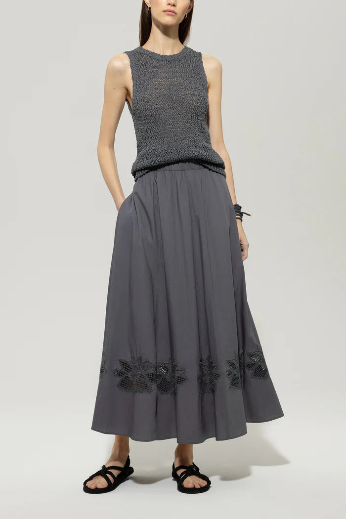 Luisa Cerano rok met borduurwerk-100% katoen-DAMES ROKKEN-Grijs