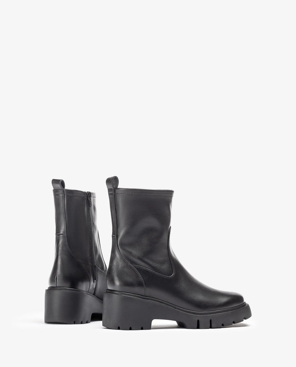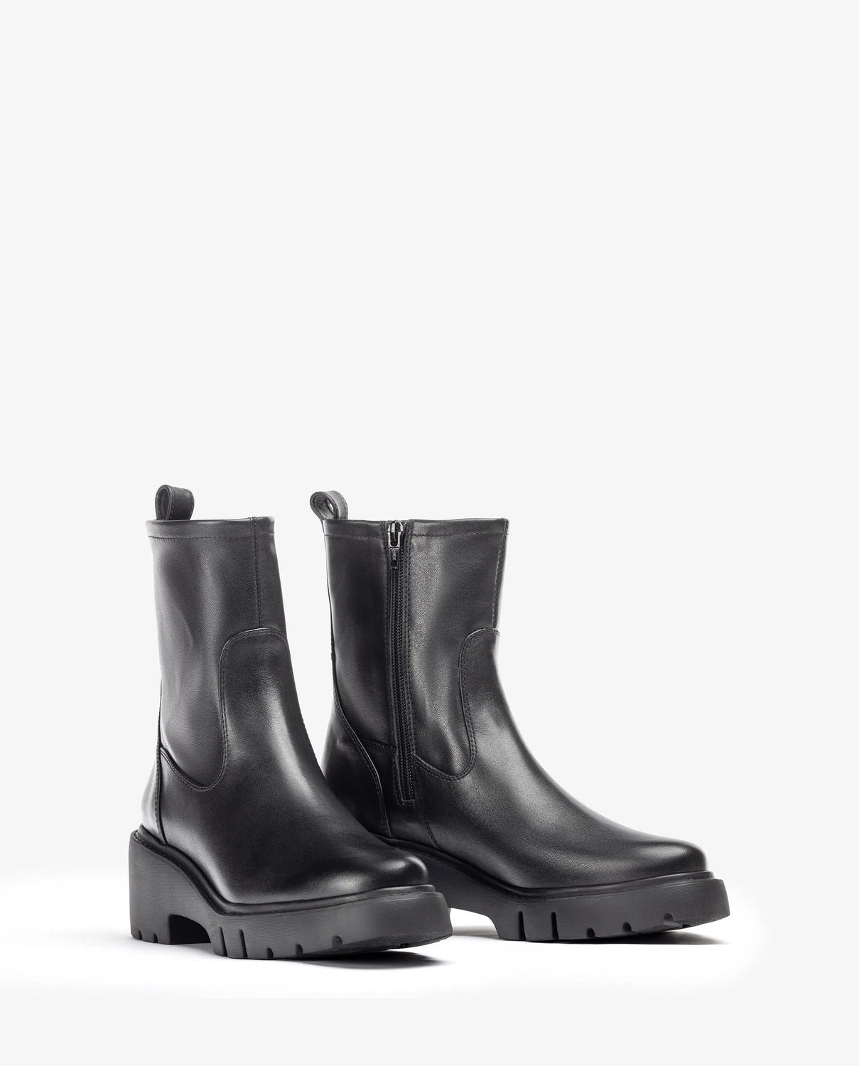 Enkellaarsjes met ronde neus gemaakt van leer. Rits aan de binnenkant en treklipjes aan de achterkant. Bijpassend blok van 2,3 cm hoog aan het plateau en 6 cm aan de hiel. Dankzij onze Superlight-technologie is het JOFO model lichter dan ooit. Een perfect model om je te vergezellen tijdens dit winterseizoen.