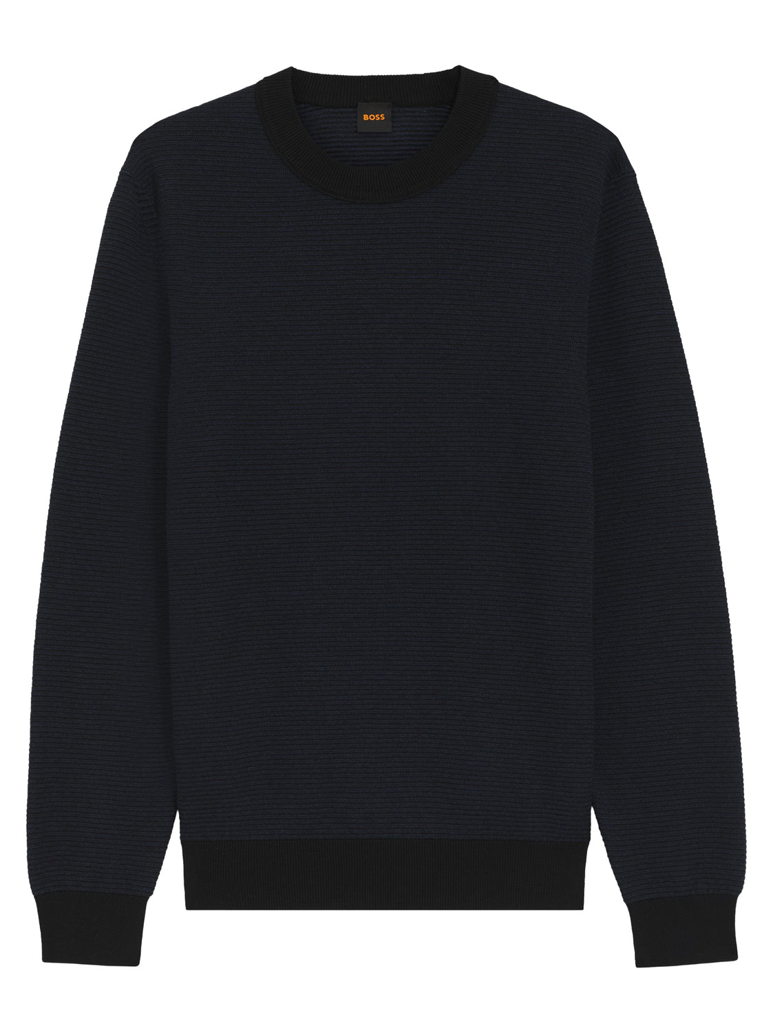 BOSS Orange Aspoki Gebreide Trui – Zwart-85% katoen, 15% kapok-HEREN TRUIEN & VESTEN-Zwart
