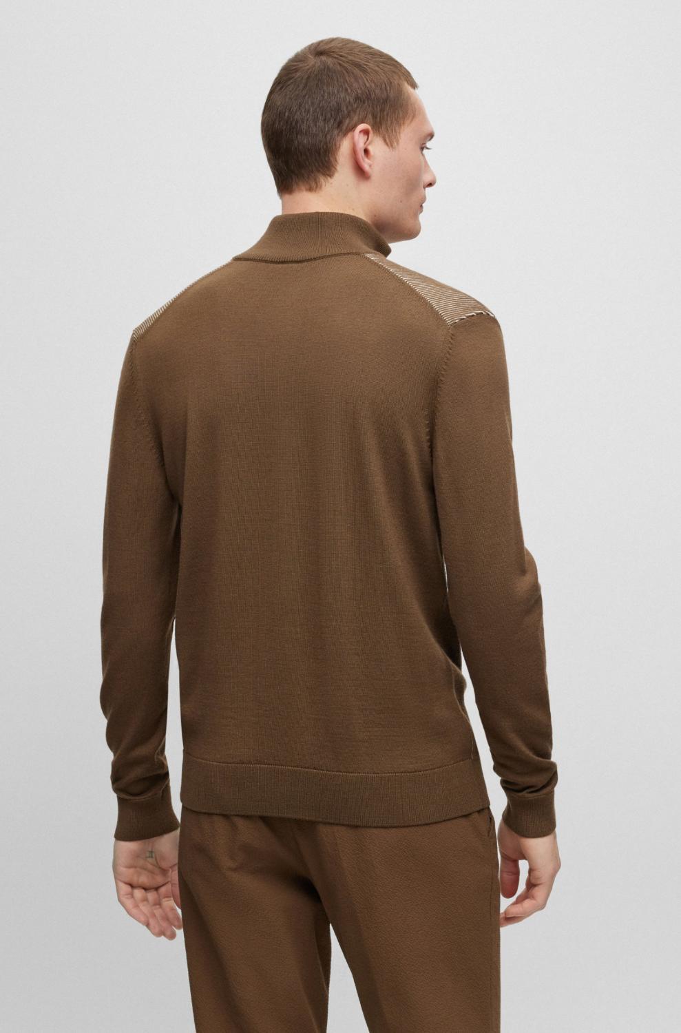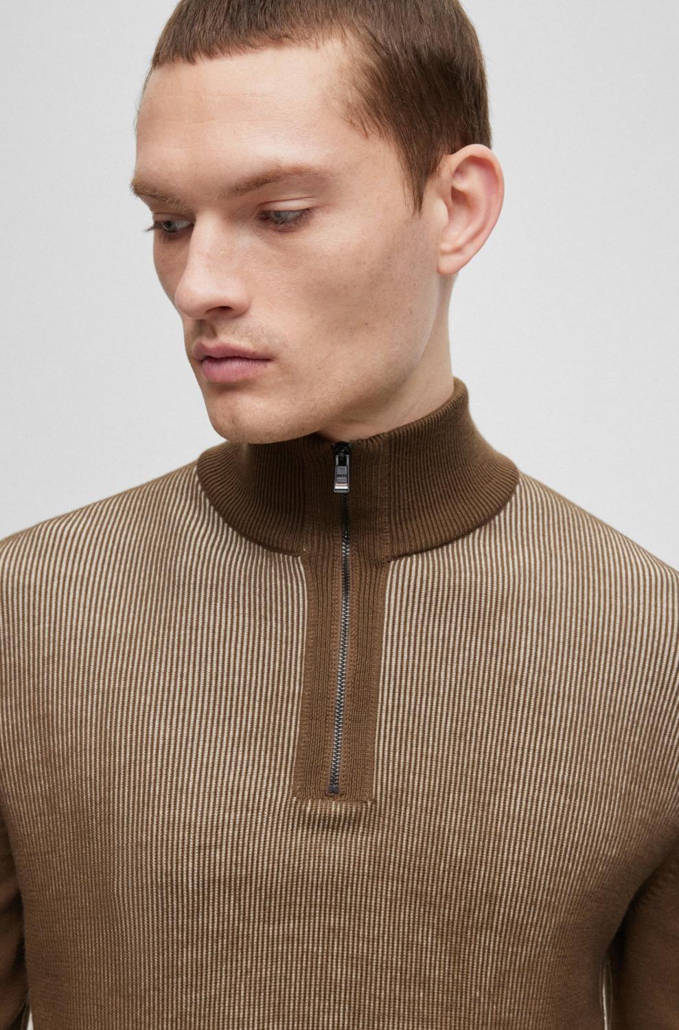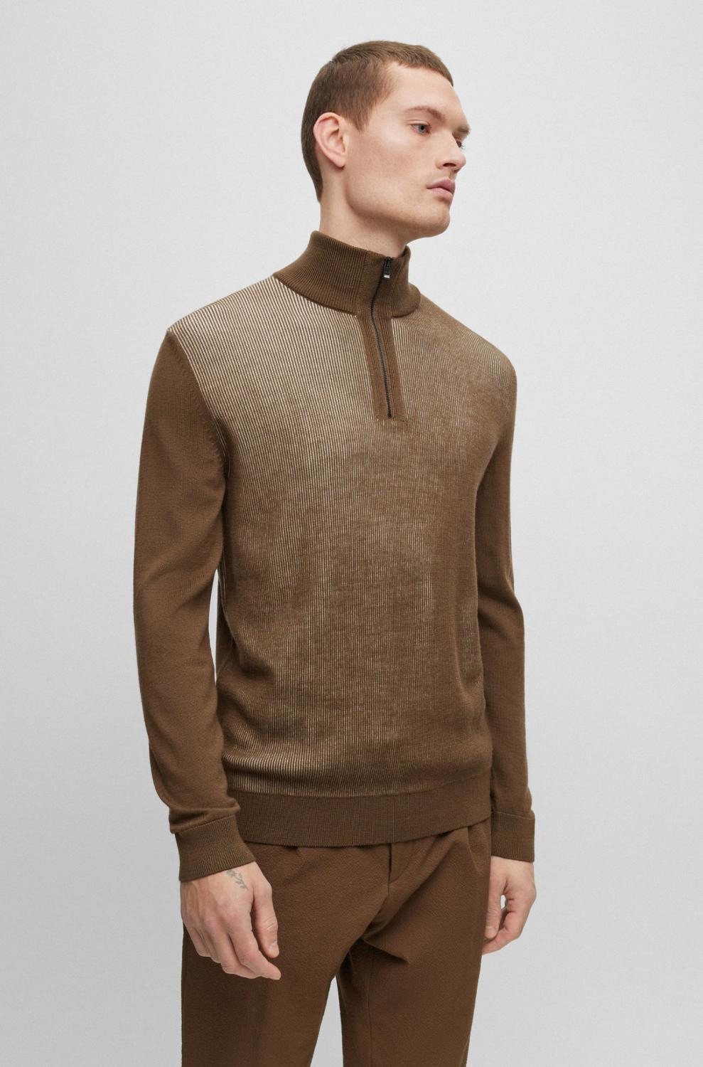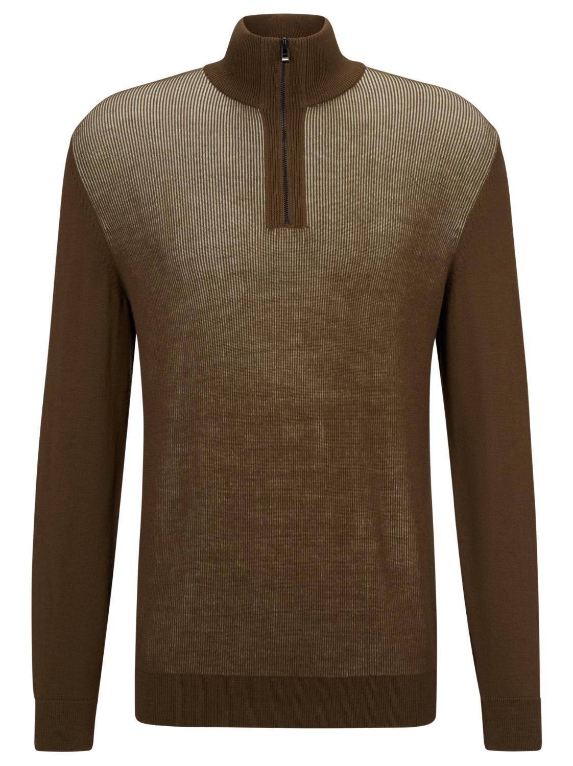Een regular-fit trui met ritskraag in een materiaalmix van wol en katoen van BOSS Menswear.