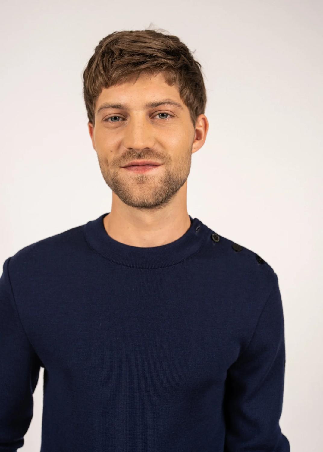 Geïnspireerd door onze traditionele marinetruien, is de Estran-trui een fijner model gemaakt van dezelfde wol als onze Marée-truien.