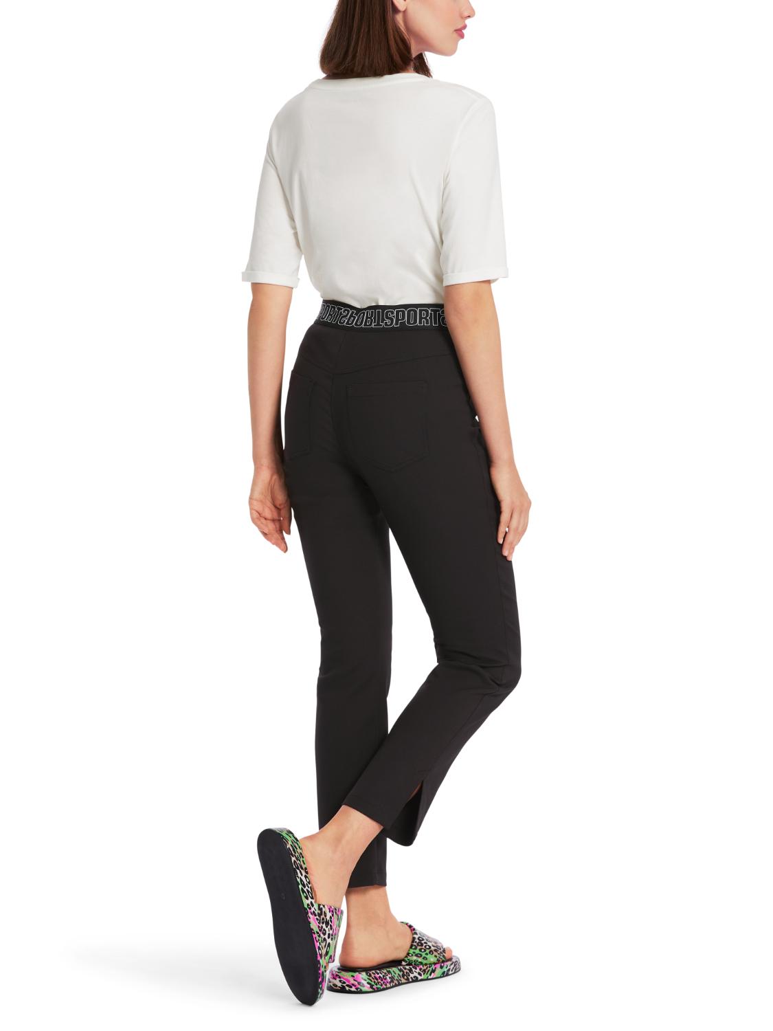 Die Hose SLIVEN besteht aus einem Fasermix auf Basis von Bio-Baumwolle und trägt das Nachhaltigkeitslabel „Rethink Together“. Sie hat eine schlanke Silhouette und eine hohe Taille. Sie verfügt über einen Reißverschluss in der Seitennaht. Eine formgebende Passe und aufgesetzte Taschen hinten.