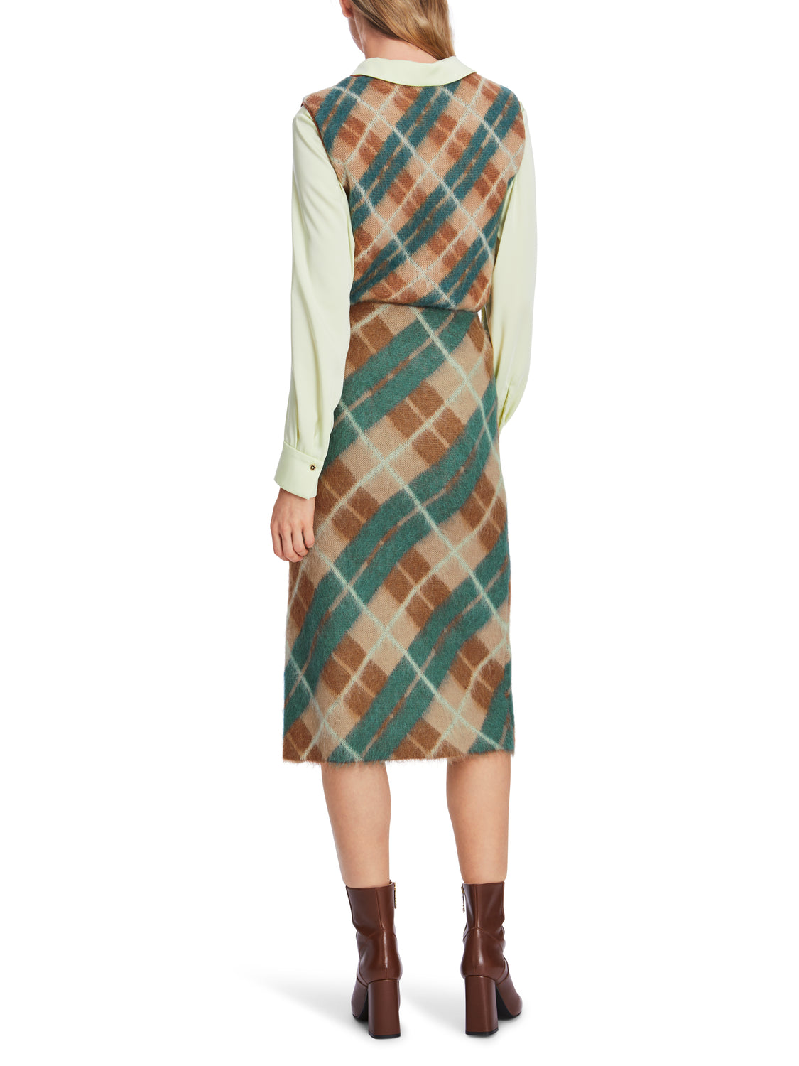 Dieser schmale Midirock präsentiert sich im typischen schottischen Argyle-Karomuster. Der hohe Seitenschlitz sorgt für Bewegungsfreiheit, während der elastische Bund für hohen Tragekomfort sorgt. Die Alpaka-, Mohair- und Wollmischung ist „Knitted in Germany“: Die Garne werden auf hochmodernen Strickmaschinen verstrickt und die Stoffe in Deutschland veredelt. Die einzelnen Teile, wie Ärmel und Vorderteil, werden in europäischen Partnerbetrieben zusammengenäht.