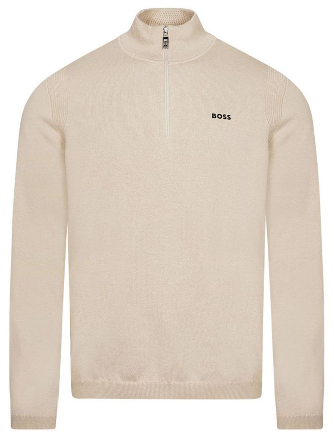 BOSS Ever-X Strickpullover mit Viertelreißverschluss in Beige.