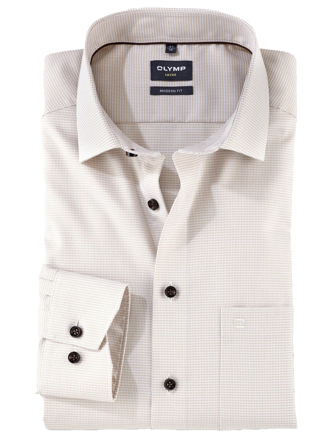 Faux-Plain-Strukturen überzeugen durch ihre intensive Uni-Wirkung und offenbaren auf den ersten Blick eine besonders feine, leicht changierende Webart, die diesem OLYMP Luxor eine moderne, elegante Optik verleiht. Mit körpernaher Schnittführung, kosmopolitischem Kent-Kragen und zeitsparender Bügelfrei-Funktionalität.