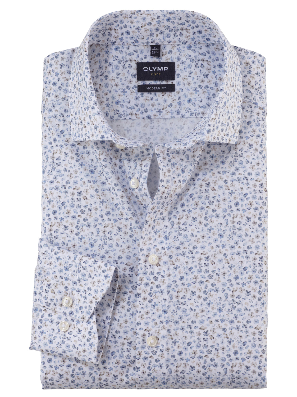 Charmant im Büro mit minimalistischem Blumenprint auf Weiß. Das angenehm kühle und weiche Luxor Modern Fit Businesshemd aus Baumwoll-Popeline unterstreicht modische Performance und Individualität im Büro. Harmonisch ergänzt durch den trendigen Global-Kent-Kragen. Atmungsaktiv, hautfreundlich, zeitsparend und bügelfrei. Etwas längere Ärmel.