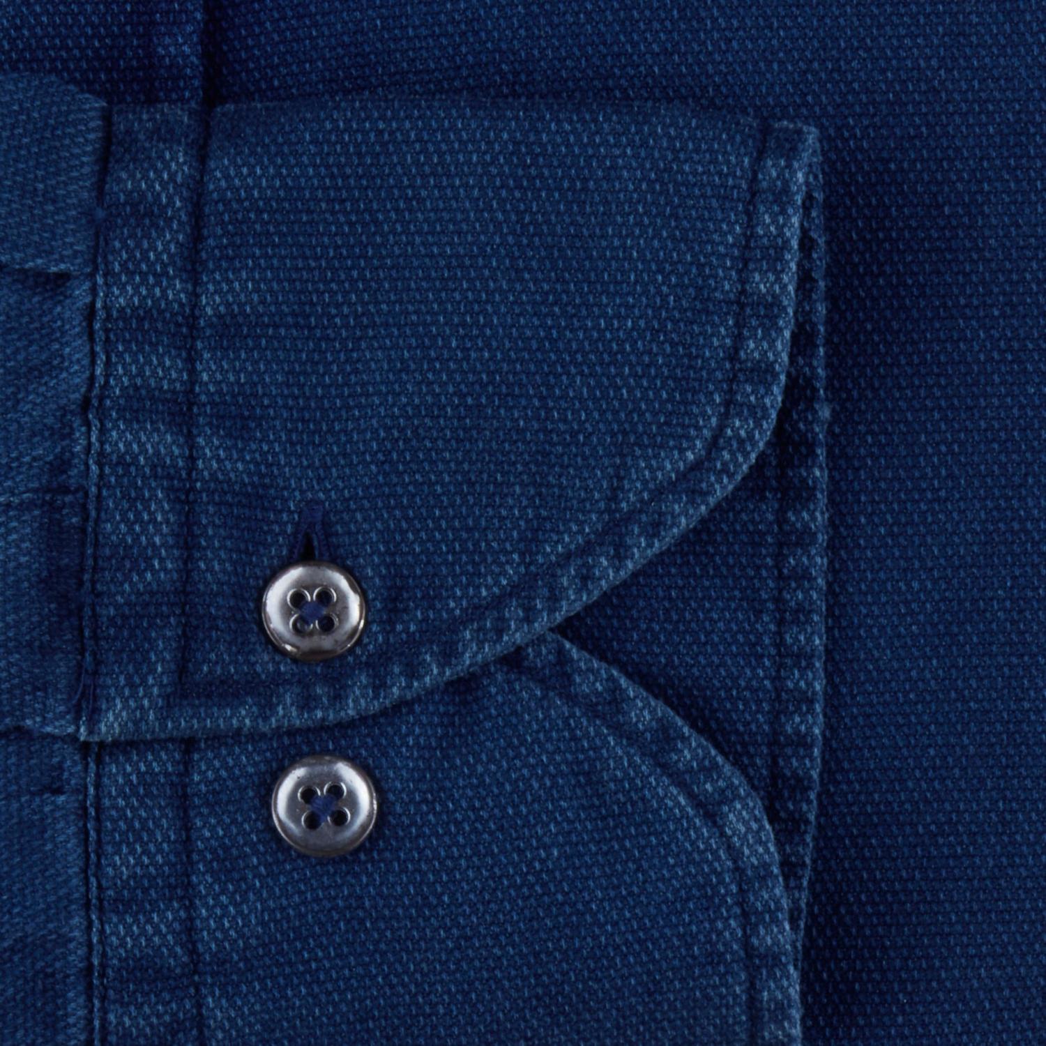 Dieses jeansblaue Fitted Body Shirt aus speziellem Piqué-Gewebe sorgt für einen entspannten Style. Es verfügt über einen kurzen Kragen, verstellbare Manschetten und Metallknöpfe. Tragen Sie es unter einem Strickpullover oder einfach so, in Ihre Lieblingshose gesteckt. Eine entspannte Wahl für das Mittagessen im Büro oder Wochenendausflüge.