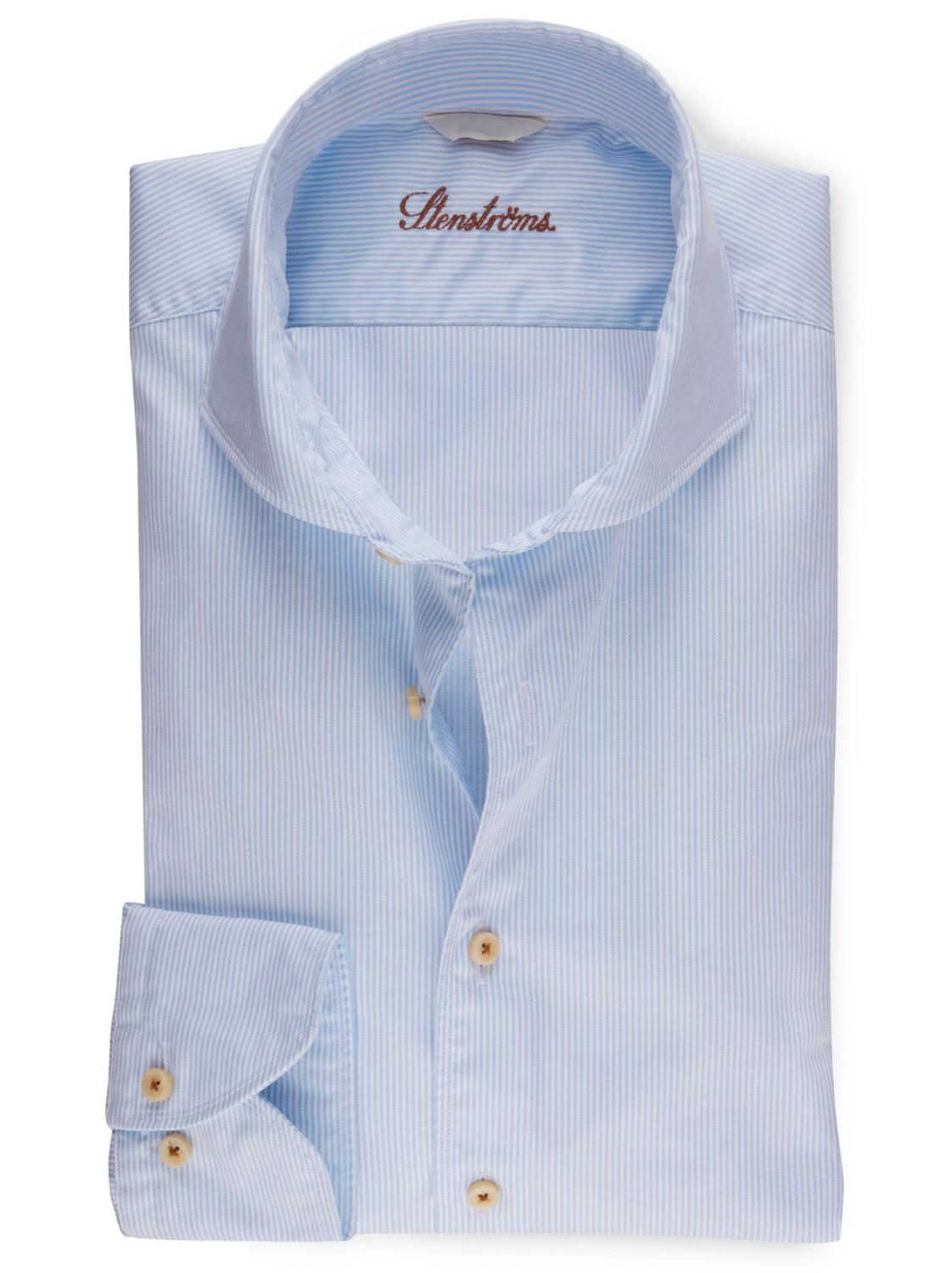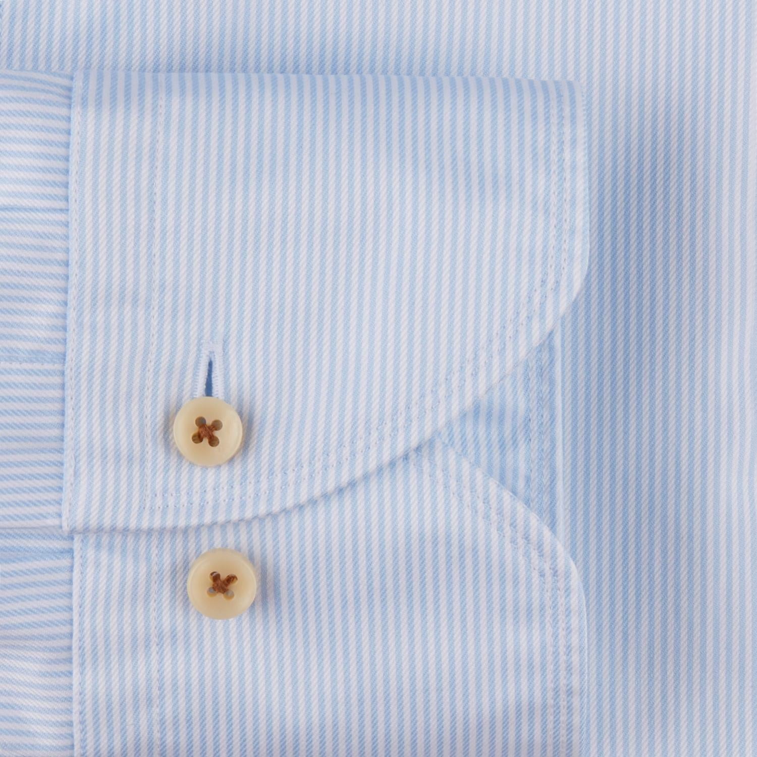 Dieses Fitted Body Hemd besticht durch sein Nadelstreifendesign aus weichem Premium-Twill für eine leicht taillierte Passform und einen bequemen Sitz. Das klassische Hemd verfügt über einfache Manschetten, braune, kreuzgenähte Knöpfe und einen durchbrochenen Kragen. Der kontrastierende braune Faden verleiht dem Hemd einen entspannten Look. Kombinieren Sie es mit einer Anzughose oder Chinohose.