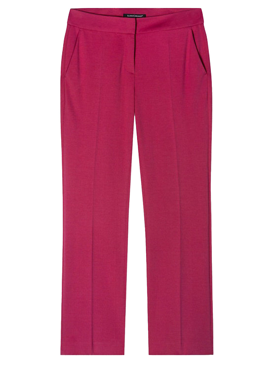 Babyflare broek in een kostuum silhouet gemaakt van zachte punto milano. Het design wordt afgerond door de cropped beenvorm en vouwen.
