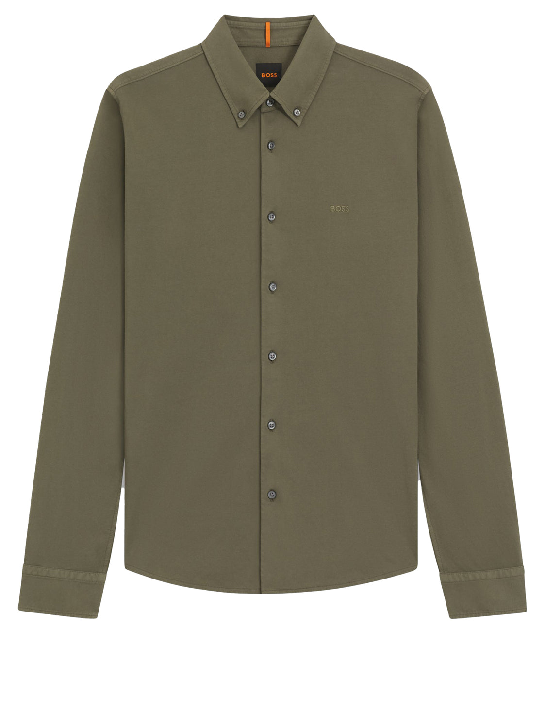Met een tijdloze uitstraling en modern silhouet voelt dit Myjersey shirt aan als je favoriete T-shirt. De slim-fit pasvorm, button-down kraag en zachte, jersey katoenen stof zorgen voor comfort en elegantie. De groene kleur geeft een ingetogen, stijlvolle look, perfect voor zowel casual als zakelijke outfits. Ontdek BOSS Orange Myjersey Shirt – Groen nu bij Hoogenboom.