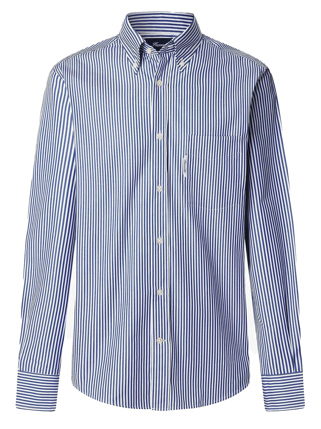 Het Façonnable Regular Fit Gestreept Poplin Overhemd is een tijdloos kledingstuk, vervaardigd uit 100% katoenpoplin voor een lichtgewicht en ademende draagervaring. Het overhemd beschikt over een button-down kraag en afgeronde manchetten met dubbele knoopsluiting. Het Bengal gestreepte patroon in marineblauw en wit voegt een klassieke en verfijnde uitstraling toe. Dit overhemd is ideaal voor zowel zakelijke als casual gelegenheden. Ontdek het Façonnable Regular Fit Gestreept Poplin Overhemd bij Hoogenboom.