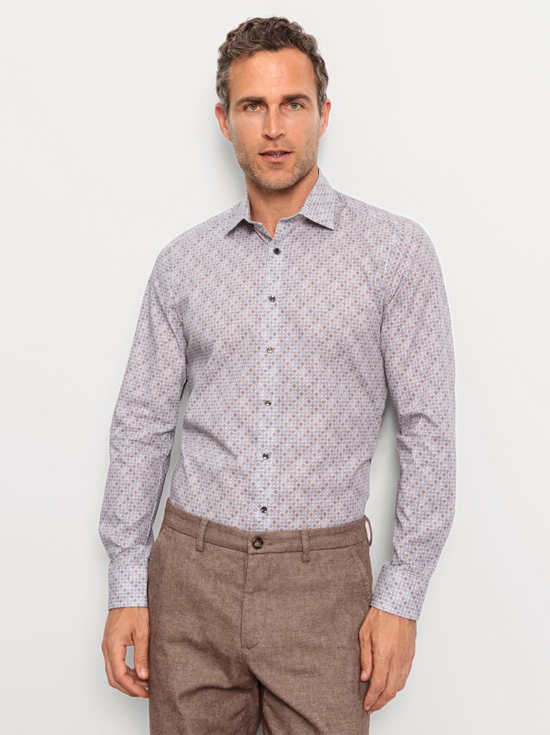 Zakelijk overhemd, body fit, New York Kent, Bruin