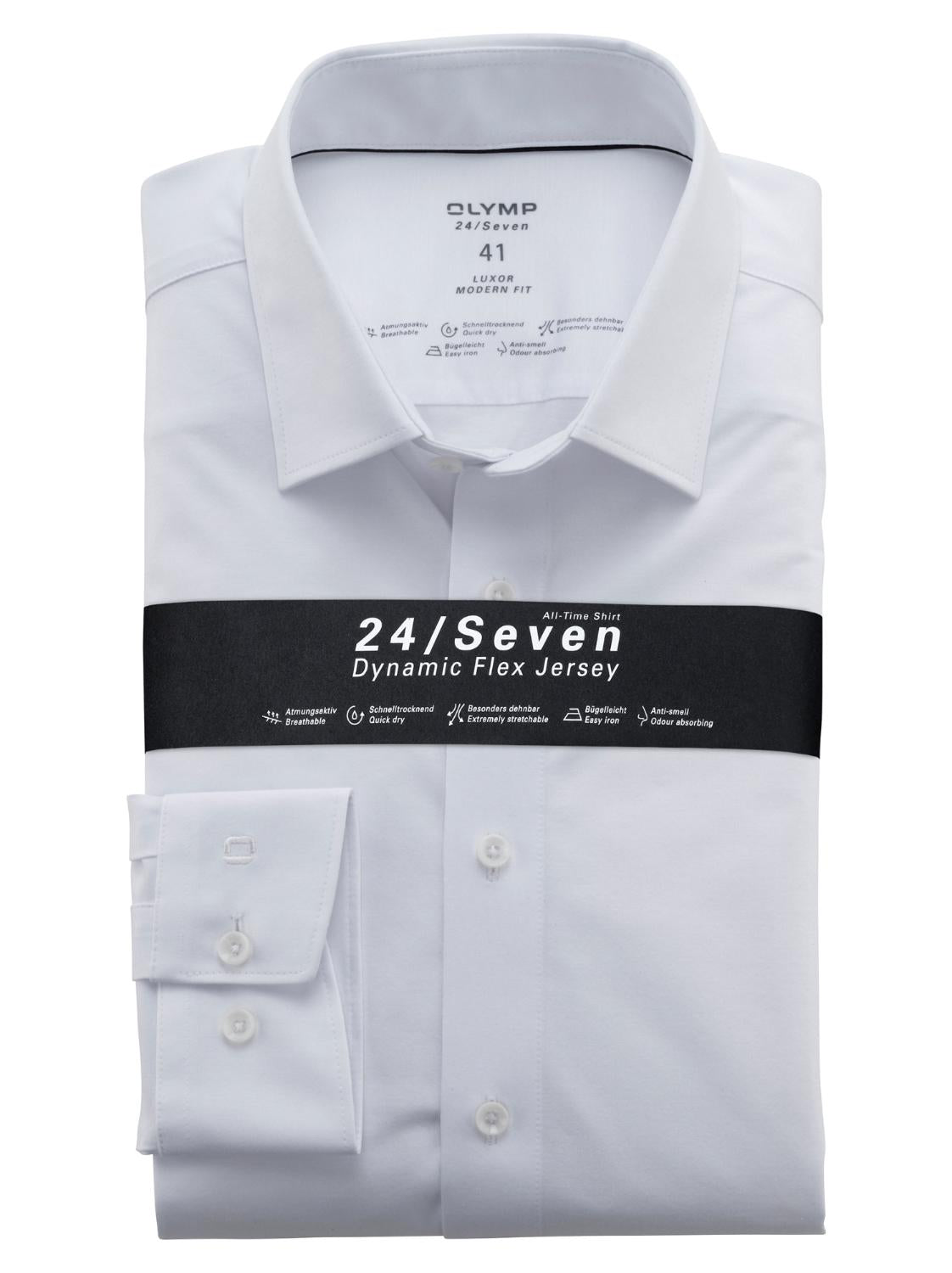 Het 24/Seven dynamic flex-shirt inspireert ook in het OLYMP Luxor modern fit business-segment met een ruime keuze aan kleuren, maximale bewegingsvrijheid en dynamisch vormbehoud. Het is zo comfortabel als een T-shirt en zo stijlvol als een overhemd met de nette New Kent. De ademende, sneldrogende, elastische, strijkvrije en geurbestendige eigenschappen van de stretchkatoen/elastaanmix maken dit innovatieve businessoverhemd tot een onverslaanbare allrounder.