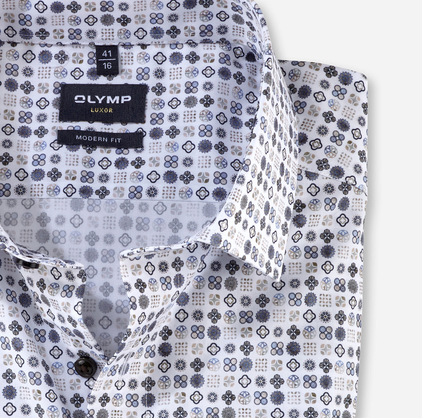 Het slimme grafische patroon in pixelscherpe kwaliteit zorgt voor modieuze afwisseling op kantoor. Dit OLYMP Luxor-businessoverhemd in een modern-fit-pasvorm wordt gekenmerkt door een aangenaam koele en gladde katoenstructuur, nauwsluitende snit en modieuze global kentkraag. Tijdbesparend strijkvrij.