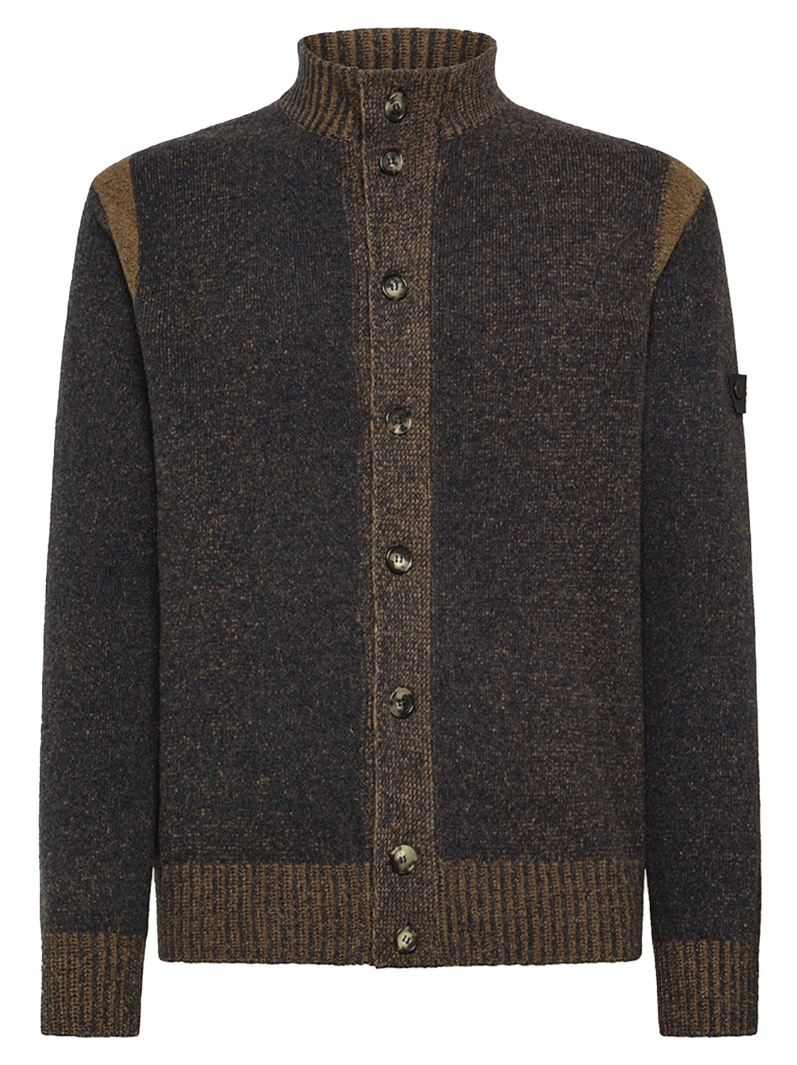 Gebreid vest van wolmix met een vanisé-effect dat de tinten en kleurverlopen benadrukt. Dit effect wordt bereikt door garens van verschillende kleuren te gebruiken om een ​​contrasterend of geschaduwd patroon te creëren, waardoor de stof een unieke en decoratieve look krijgt.