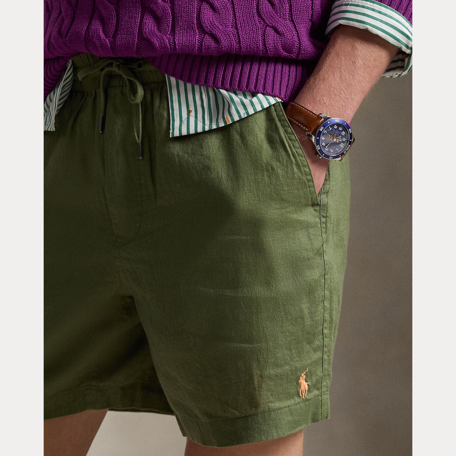 De POLO Ralph Lauren Prepster linnen short, 15 cm – Groen heeft een comfortabele pasvorm en combineert een sportieve uitstraling met een verfijnde, casual look. Het lichtgewicht linnen voelt luchtig en aangenaam aan, waardoor deze short ideaal is voor warmere dagen. De elastische taille met trekkoord en het iconische Pony-logo geven het ontwerp extra draagcomfort en een herkenbare POLO Ralph Lauren-uitstraling. Ontdek POLO Ralph Lauren Prepster linnen short, 15 cm – Groen nu bij Hoogenboom.