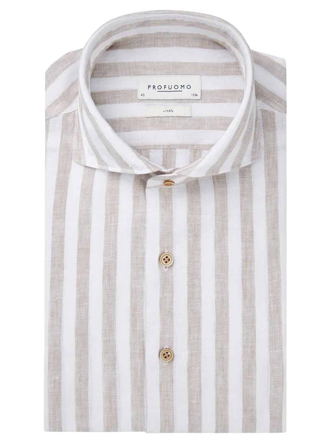 Profuomo beige linnen streep overhemd-100% Linnen-HEREN SHIRTS-Beige