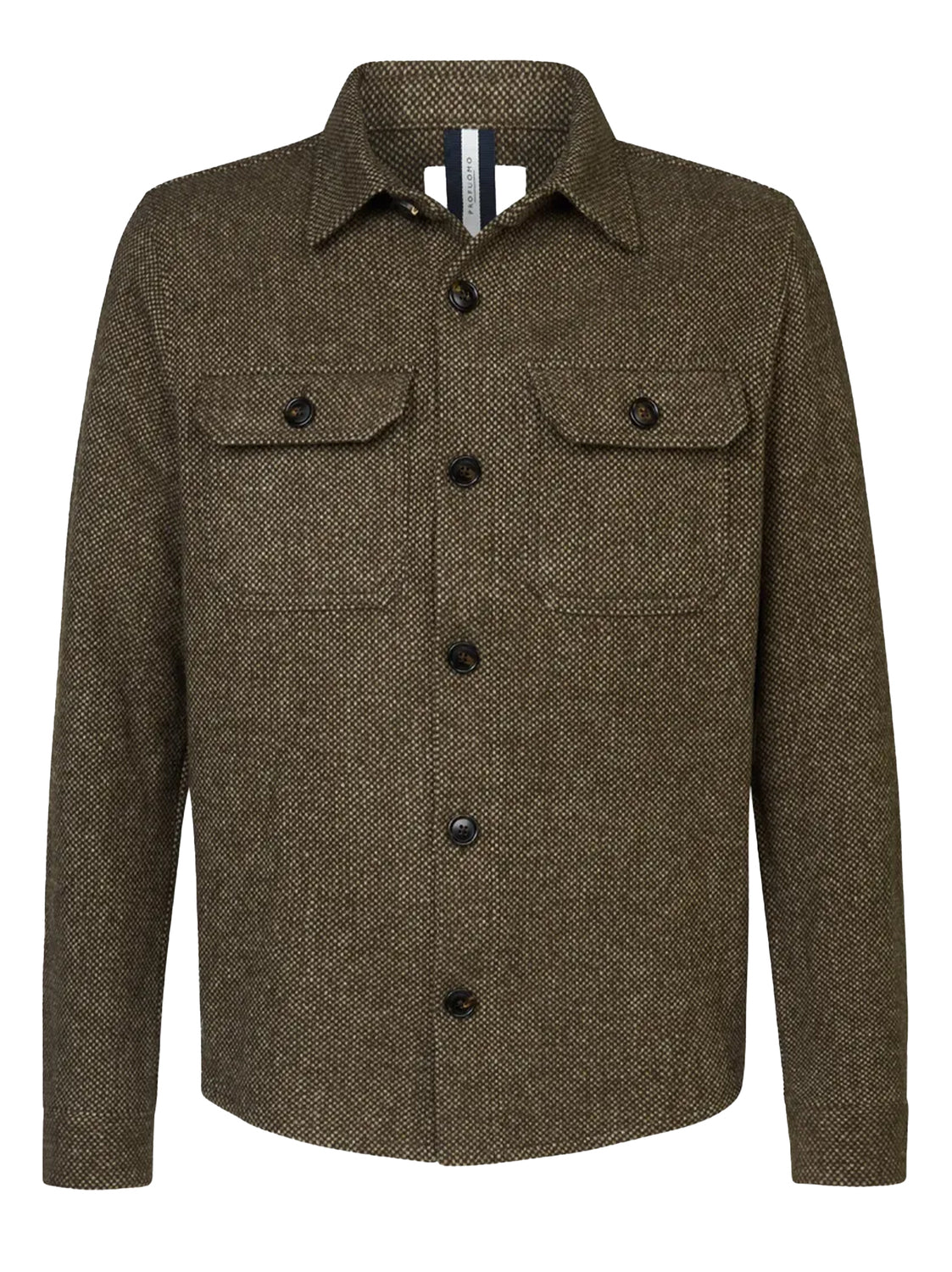 Het overshirt is de perfecte mix van een jasje en een overhemd en is een goed item voor een gelaagde look. Draag het over een t-shirt of trui. Dit bruine overshirt met mooie structuur is perfect voor comfort in de winter en door de wollen kwaliteit ook warm. Gemaakt van een Europese stof met 2 opgestikte zakken en echte hoornen knopen.