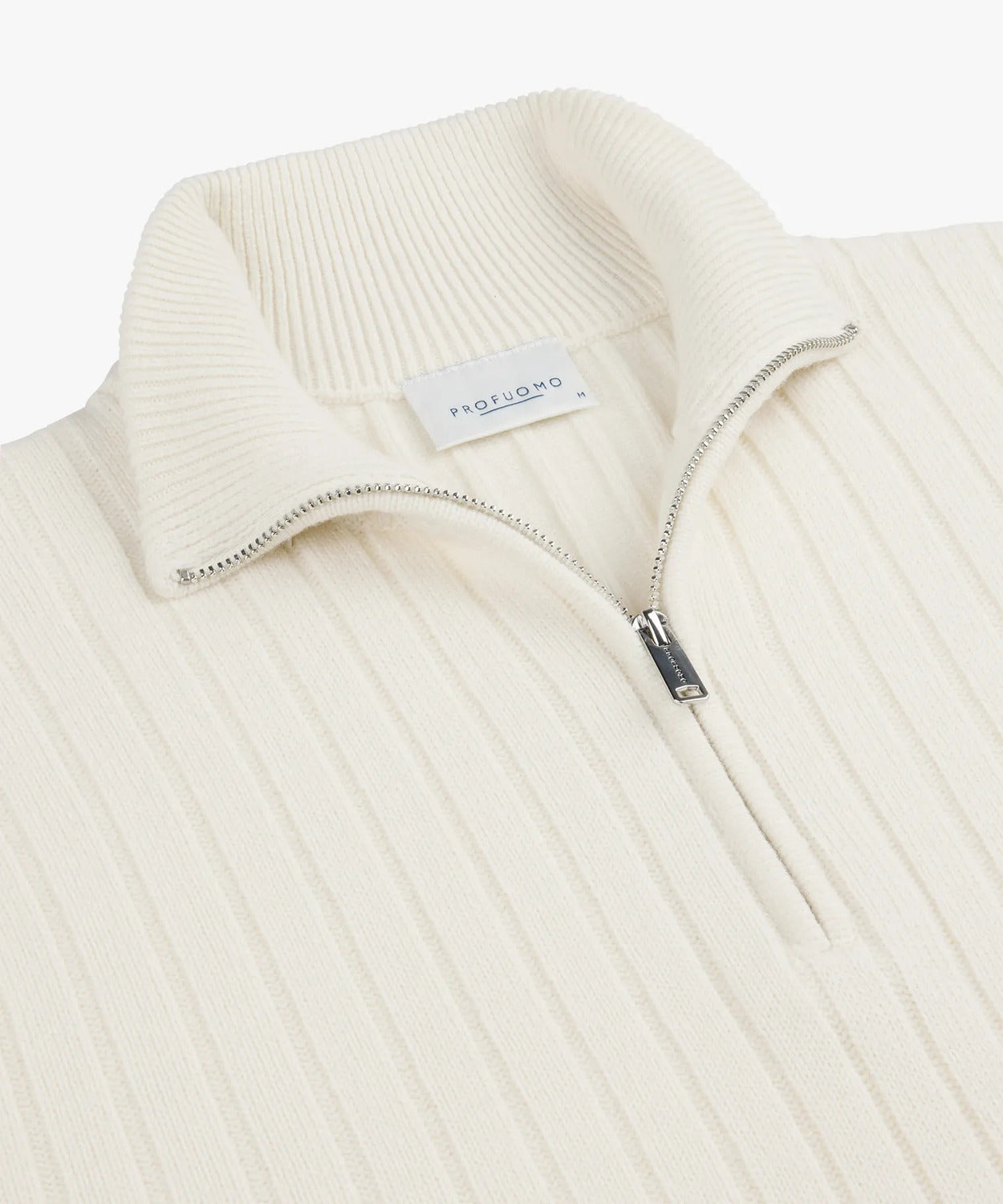 Profuomo Wool‑Blend Half‑Zip Trui – Off‑White