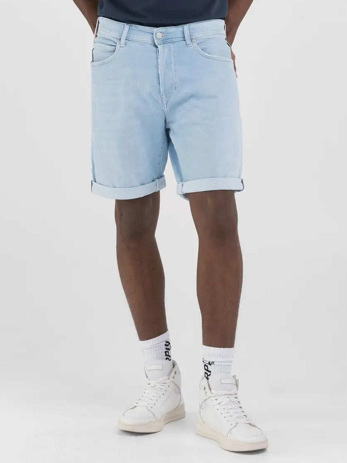 Replay denim shorts light blue-Organisch katoen<br />TC OCS CUC-02480307<br />60% organisch katoen - 39% katoen - 1% elastaan<br />-HEREN BROEKEN-Blauw