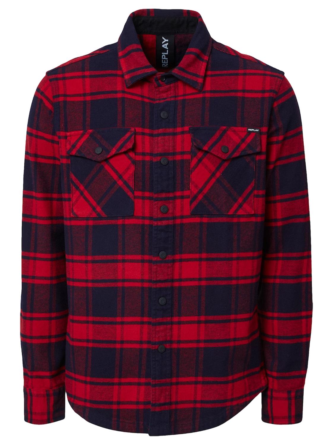 Replay overshirt ruit-100% katoen-HEREN SHIRTS-Rood