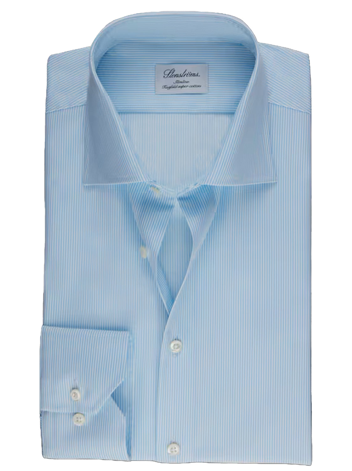 Stenstroms gestreept twill shirt Slimline-Katoen Tweevoudig 100%.-HEREN SHIRTS-Blauw